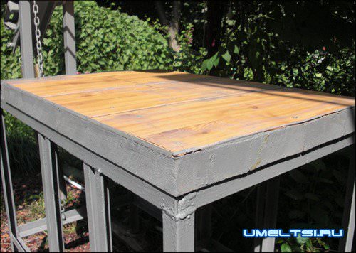 Стол для отрезного станка изготавливают из строганой доски 40-50 мм, и для выравнивания мелких неровностей покрывают фанерой или USB.