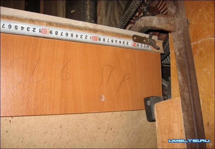 На изготовления станка вы потратите в районе 7 тысяч рублей. Зато произвести качественный распил ДСП вы сможете сами, без посторонней помощи. И это с учетом того, что такие листы крупноформатные. Длина листа равна примерно 3,5 метрам. Но для удобства работы перед началом распила разметьте все необходимые замеры на листе карандашом. Когда у вас наберется достаточное количество таких вот заготовок, вы можете начинать работу на станке. Не забывайте оставлять припуски с каждой стороны по 7 - 8 мм.