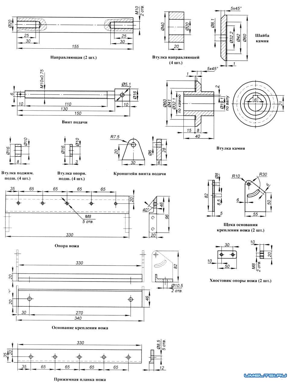 Чертежи и размеры деталей заточного станка