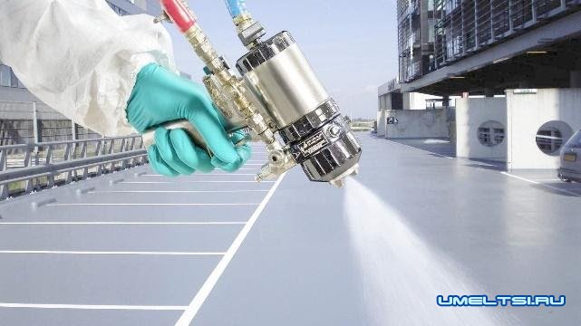 Предварительного соединения компонентов не требуется, так как это происходит непосредственно в пистолете-распылителе, который находится в оборудовании. Через специальный шланг подается направленная струя, которая равномерно ложится на заданную плоскость и образует ровный слой.