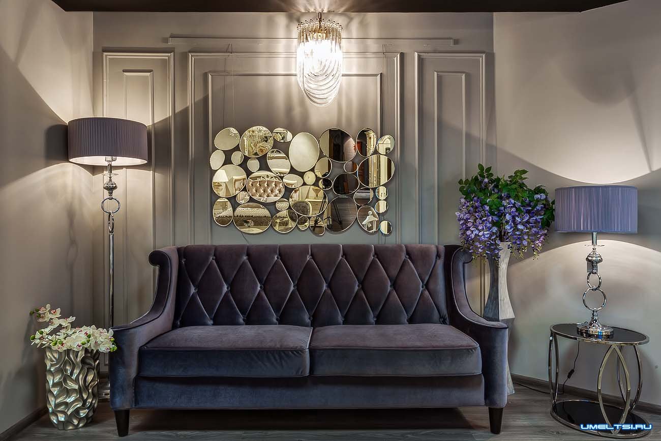 - Делаем яркий акцент в интерьере. Выбирайте решения с необычным дизайном, чтобы привлечь внимание гостей к оформлению. В квартирах в стиле лофт стоит расположить на стенах модели простой формы в толстых деревянных рамах, для дизайна шебби-шик и «версаль» подойдут элементы со специально состаренной позолотой, а для модерна и фьюжена – изделия, состоящие из нескольких составных частей.