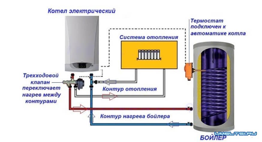 Теперь можно ознакомиться с типовыми схемами подключения электрических котлов к отопительным коммуникациям в таких ситуациях: