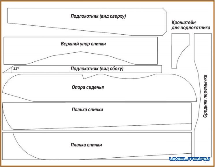 Рис. 1. Эскизы деталей кресла в стиле Адирондак.
