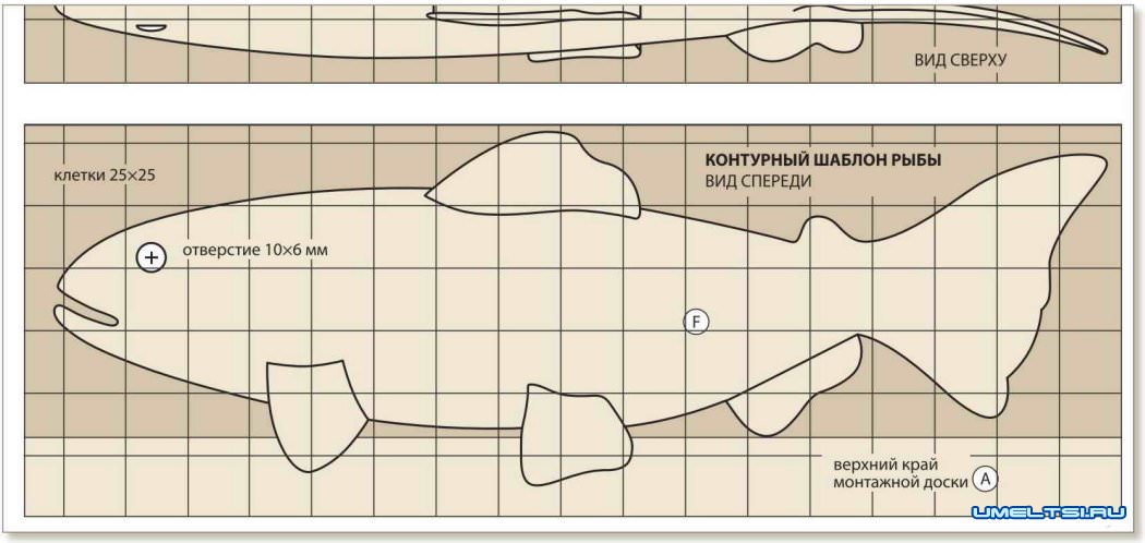 2. Расположите рыбу над серединой верхней монтажной доски А и обведите карандашом контуры двух плавников.