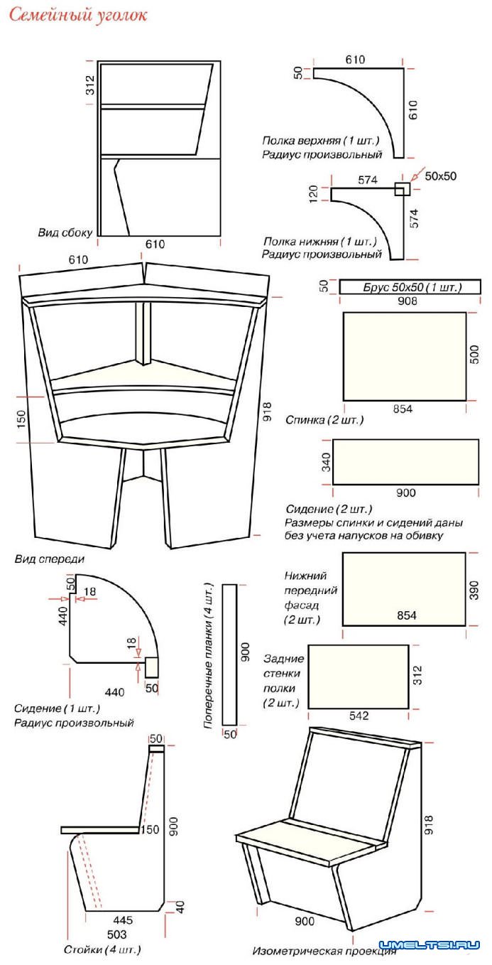 Схема и чертежи кухонного уголка