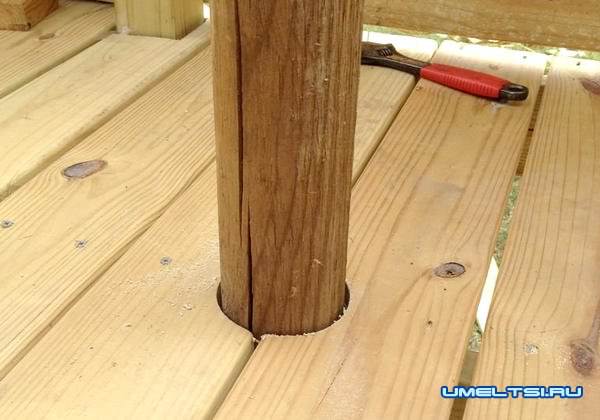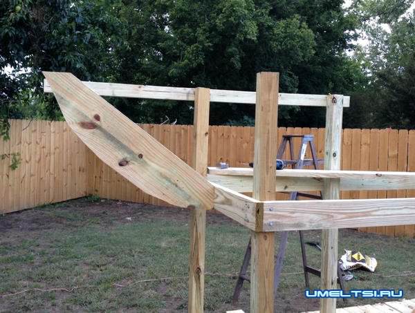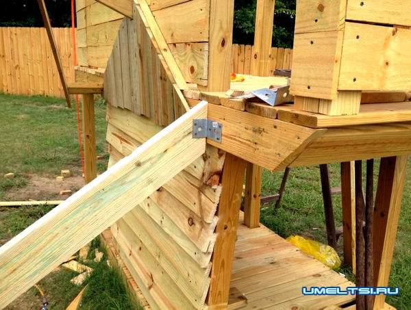 7. Далее сооружаем трап с поручнями, чтобы детишки легко могли взбираться на палубу корабля. К поручням дополнительно можно привязать тонкий канат.
