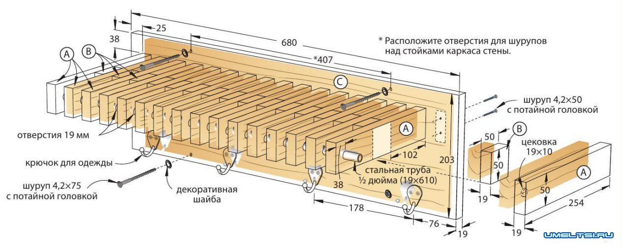 Настенная вешалка с полкой своими руками