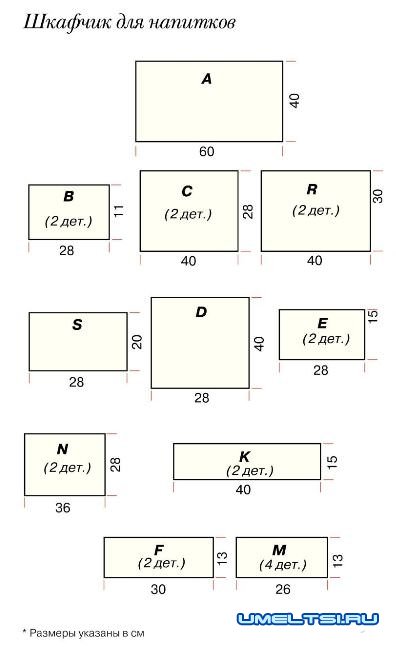 Из ЛДСП вырезал детали нужного размера по схеме.