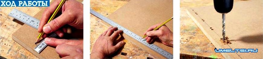 2...и у нижнего края и соединить отметки при помощи линейки. При этом сразу можно разметить отверстия.