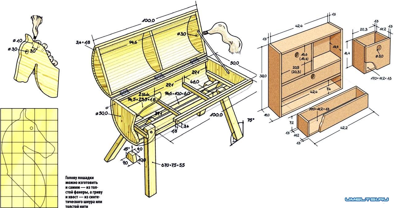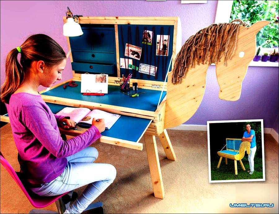 Когда ребенок выходит из возраста плюшевых игрушек и деревянных качалок, его взросление — не причина отправить старых любимцев «в изгнание». Но задуматься над переобустройством детской стоит. Например, лошадку легко превратить в компактный забавный секретер для подростка. Немного смекалки, немного досок и шурупов, надежный инструмент и любовь к своему быстро растущему чаду — вот что вам для этого понадобится.