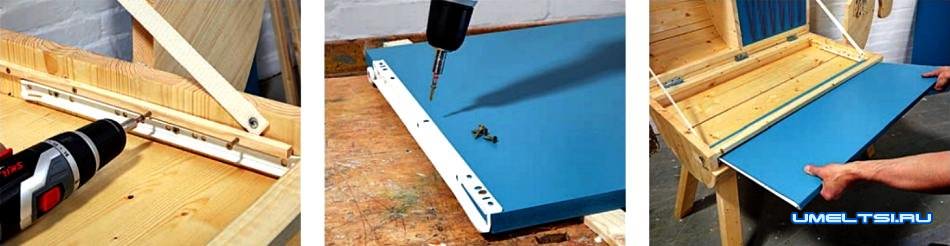 1. Вторую столешницу (которая располагается не на направляющих), уложите на установленные рейки.