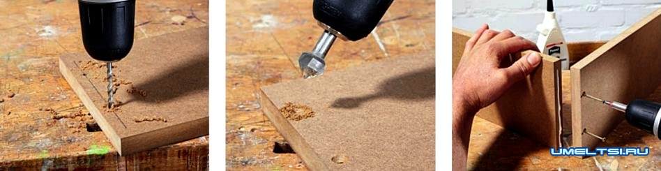 4. Просверлите отверстия по диаметру шурупов (3,5 мм), чтобы впоследствии боковые плиты не растреска лись при ввинчивании.