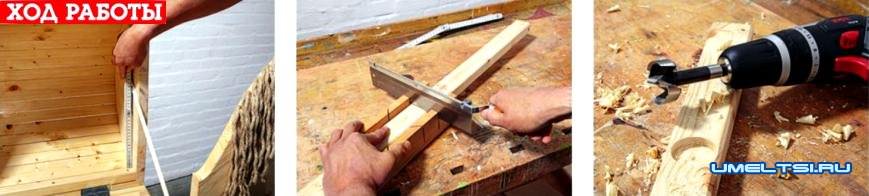 3. Опорой для столешницы служат две рейки толщиной 10x10 мм. Потребуется предварительно просверлить отверстия сверлом 3,5 мм.