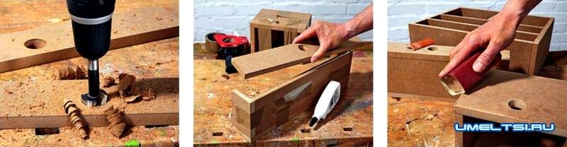 4. Все кромки ящиков надо скруглить при помощи шлифовальной колодки. Не забудьте сделать это и с внутренней стороны ящиков.