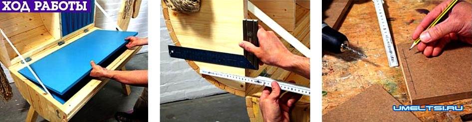 В данном случае каркас корпуса сооружен из древесины хвойных пород. На полукруглое туловище пошло 42 рейки размером 3.4 x 1,8 x 100 см, а также фанера толщиной 27 и 18 мм.