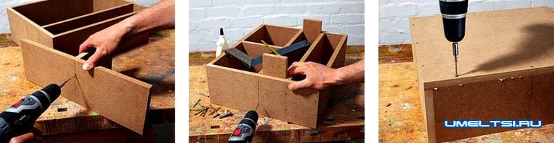 3. Теперь надо склеить ящики. В качестве фиксации используйте прочный скотч, который снимете после высыхания клея.