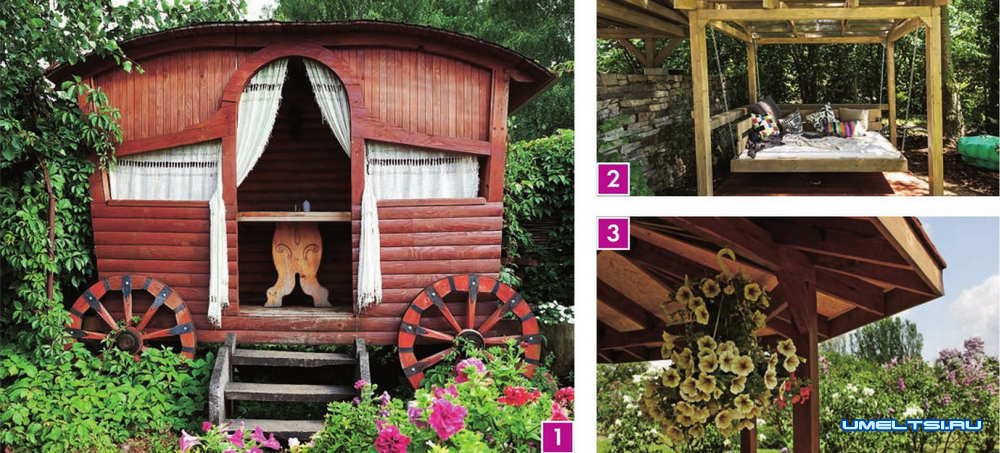 1. В беседке в виде кареты уместны «потрепанные» временем шторы
