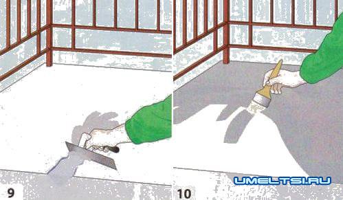 9.Излишек раствора удаляется шпателем. Поверхность разравнивается металлическим или пенопластовым шпателем.