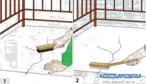 Способ ремонта напрямую зависит от размера повреждения, а также места, в котором оно возникло. Поэтому следует внимательно ознакомиться с инструкцией на упаковке материала, чтобы не устранять повреждения стены составом для полов. Хотя существуют растворы, одинаково подходящие как для ремонта стен, так и полов или лестниц. Большинство из них можно использовать как снаружи, так и внутри дома, но необходимо проверить их назначение.