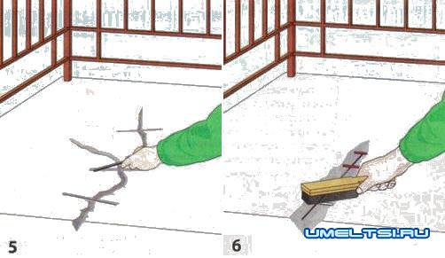 7.Сначала с помощью кисти наносят адгезионный состав. Толщина его слоя должна быть около 2-3 мм. Тщательно очистив трещину, равномерно распределяют его на поверхности всех неровностей.