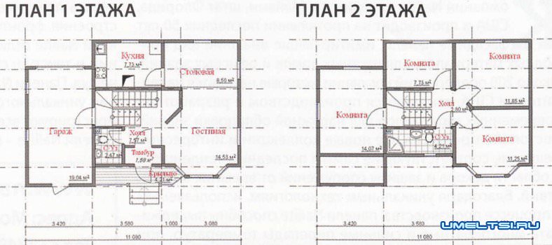 Общая площадь: 116,5 кв. м; высота 1 -го этажа — 2,7 м, 2-го этажа — 2,5 м