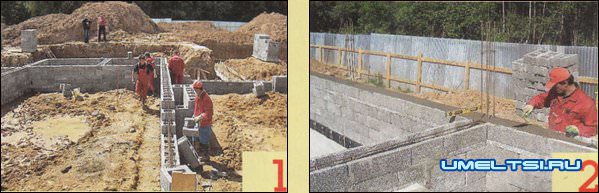 1. Фундамент дома (ленточный сборный) выполняем с применением тех же блоков, что и стены будущего дома.