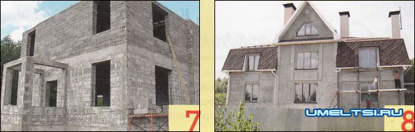 7. Первый этаж готов. Выполняют перекрытие и приступают к укладке стен второго. Одновременно сооружают лестницу.