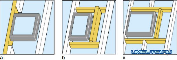 а) Расширение проёма за счёт наращивания стропила по внешнему краю