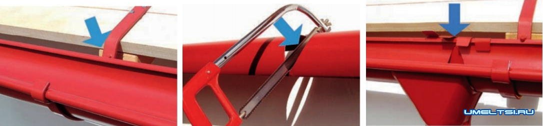 4. Устанавливают желоба на кронштейны. Для наращивания длины используют специальную деталь — соединитель желоба.