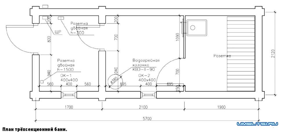 • оцинкованного желоба и сливного трапа для отвода воды из бани;