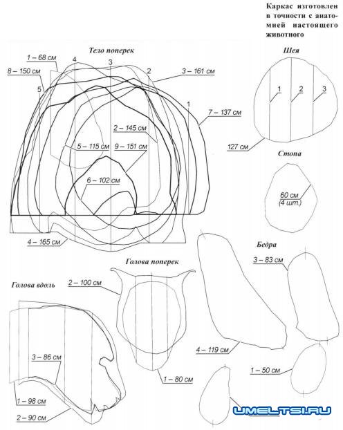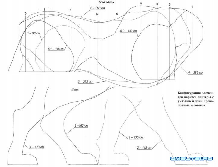 Работу начал с того, что прорисовал. а затем распечатал на принтере в формате pdf точные чертежи элементов туловища, головы и лап в натуральную величину. Отдельные части пантеры вырезал в режиме постера с метками вырезки и склеил их в один чертеж.